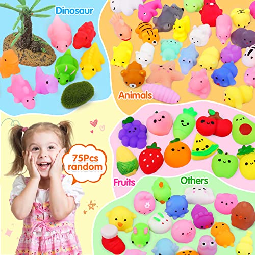 - 🥳Great Party Favor & Decor🥳: Upgraded 75pcs mochi squishy toys set, include amazing squishies, such as animals, dinosaurs, fruits squishy etc. Vibrant squishy toys for kids, work well as Valentine squishy, Birthday party favors, Christmas party favors, Halloween party favors. Kawaii squishies serve as desk decor & room decor, incorporate the cuteness squishy into your life!