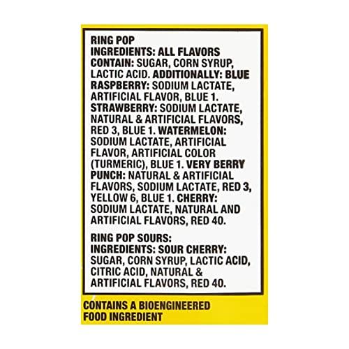 Details: Ring Pop is the ultimate iconic wearable lollipop hard candy for summer vacation, with an enormous eye-catching candy gem that's so deliciously playful, the fun never ends! This hard candy is adored by kids and adults which makes it perfect for sharing with family and friends at weddings, holiday celebrations like the 4th of July or Summer parties, and almost any special occasion. These tasty treats can also add a fun twist to Summer birthday parties and goodie bags! Vibrantly colorful and unique, Ring Pops bulk lollipops add a level of fun to any summer celebration, no matter where it may be. These lollipop assortments are great for any kid's summer party and make great beach and pool treats. Ring Pop variety pouches are the ultimate kids' candy, with a wide assortment of flavors so everyone can choose their favorite! Kids will love treating themselves to Ring Pop lollipops during a summer barbeque, luau, pool party, 4th of July celebration or even receiving them as a delicious and unique summer party favor. They're individually wrapped, so they also make great summer candy gifts or summer party decorations. So, what are you waiting for? Brighten up your summer, or save a bag of these delicious individually wrapped treats in a variety of flavors for the family. Each lollipop variety bag includes 15 individually-wrapped Ring Pop gem candy lollipops in a selection of 5 assorted flavors of classic mouthwatering favorites - Strawberry, Blue Raspberry, Twisted Blue Raspberry Watermelon, Sour Cherry, and Watermelon. Unwrap the fun at your kid’s summer birthday party because the bulk variety pack means there are different tasty flavors for each to enjoy, but enough to go around and share the sweet fun together! Ring Pop summer candy lollipops make an excellent addition to summer camp care packages, summer birthday party decorations, or gifts, or keep them on hand as a pantry staple for snacks or a delicious candy treat. Our summer candy mix is shelf-stable and long-lasting. Disclaimer: Not for children 3 and under.