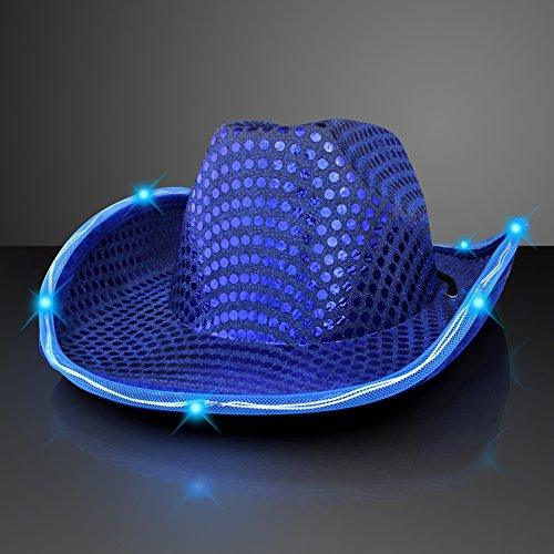 LED Flashing Cowboy Hat With Sequins (Blue Color, 1 Quantity Per Pack)