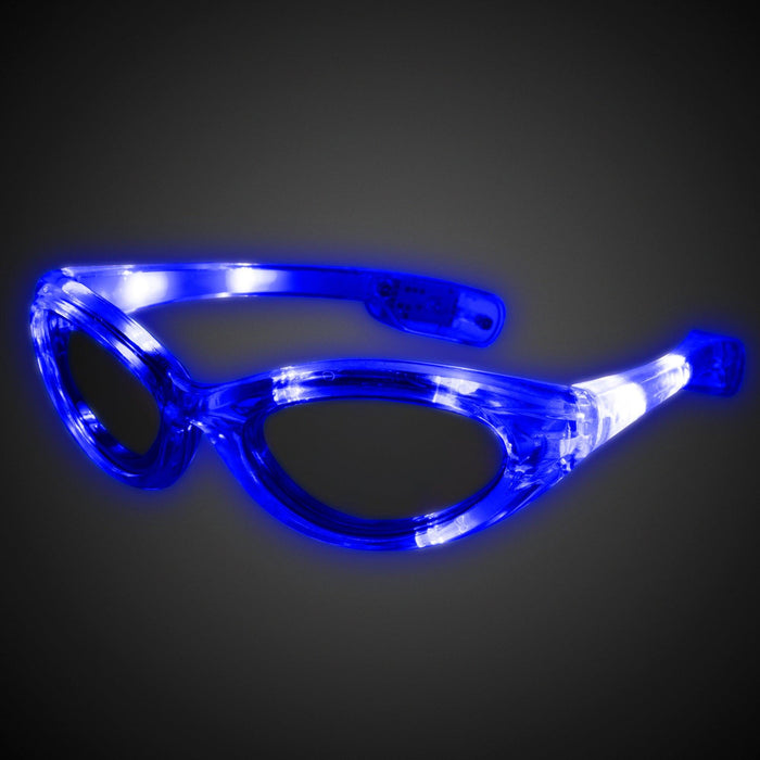 You've seen them around at theme parks and events, now you can own your very own pair of Premium LED Sunglasses from Glow-Paradise! Show up to any nightlife party or event and make the lights flash on you! The party doesn’t start without the ultimate Premium LED light up eyewear. There is no better accessory for a nighttime event or light up party. You’re guaranteed to be the brightest in the room! The Premium LED glasses are made of environmentally friendly, high-quality PC plastic that is durable against falls or cracks. Whether you are an adult or getting them for a kids event, party goers of all ages can enjoy the great light show these Premium LED light up glasses bring! The LED Flashing Premium Glasses have bright LEDs around the rim of the glasses to shine. Activate them by switching the on/off switch located on the glass’ leg.