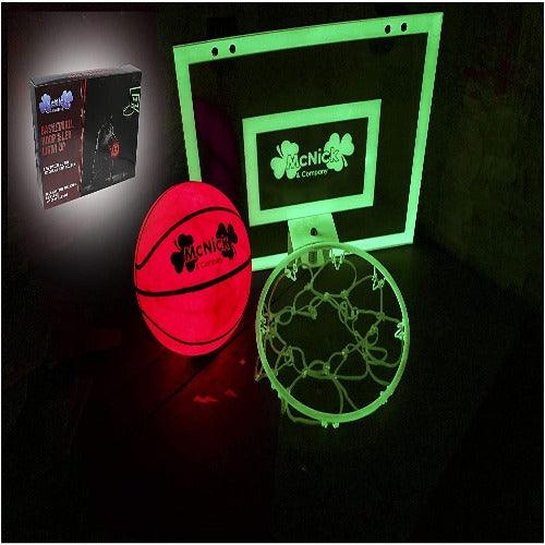 - The glow in the dark hoop is run by batteries and turns on with the press of a button