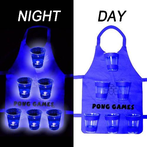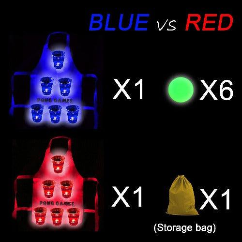 - A pong apron has 12 cups from which 6 are red and 6 are blue along with 6 glowing balls