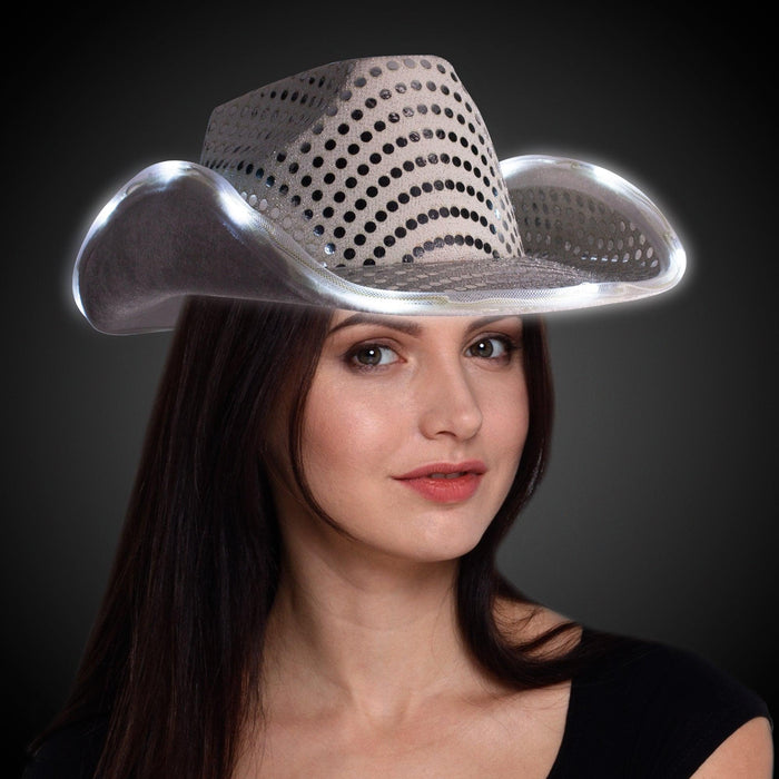 LED Flashing Cowboy Hat With Sequins (White Color, 1 Quantity Per Pack)
