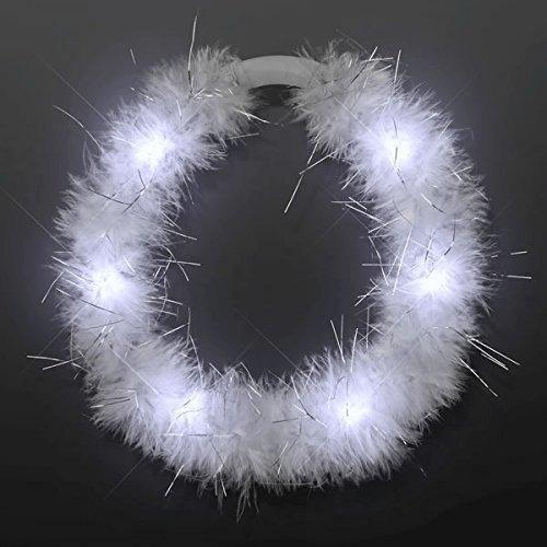 - The LED Angel Halo headband features white feathers which look magical in every way